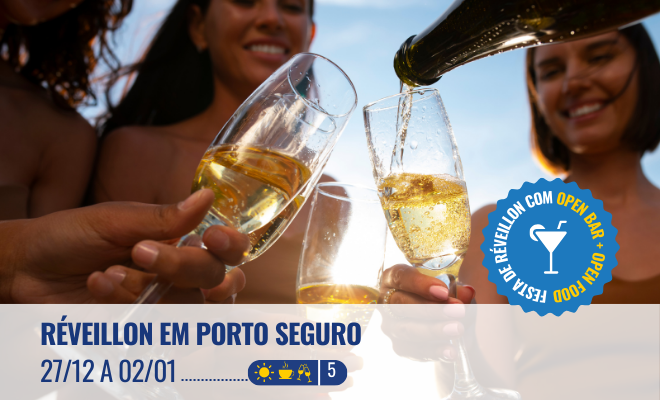 Pacote c/5 diárias no Sueds Segundo Sol com café da manhã, transporte em ônibus leito-total + uma super festa de Réveillon!